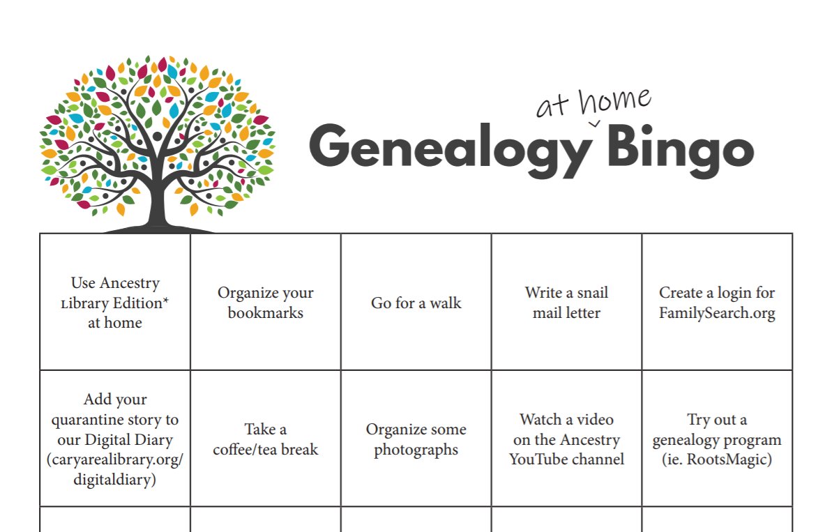 Cary Area Library On Twitter Here S Something Fun For Our Genealogy Enthusiasts Genealogy Bingo Pdf Https T Co Qhybbhecm6 Https T Co Fm3ve0hkbg Twitter